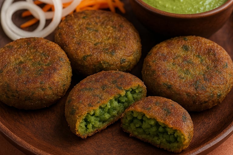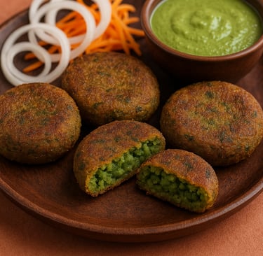 A wholesome blend of spinach, peas, and spices — pan-seared to golden perfection for a healthy, hearty bite