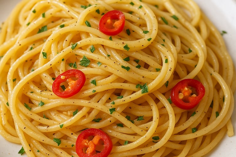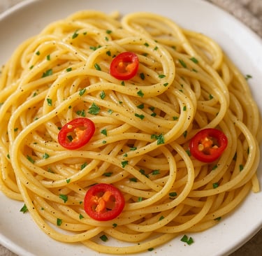 A minimalist Italian classic with olive oil, garlic, and a touch of chili for subtle heat and elegance.